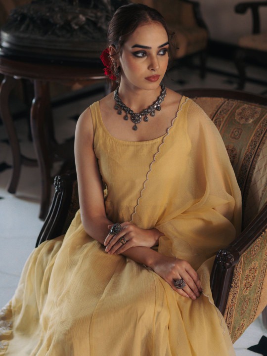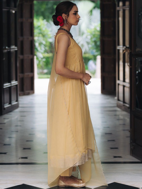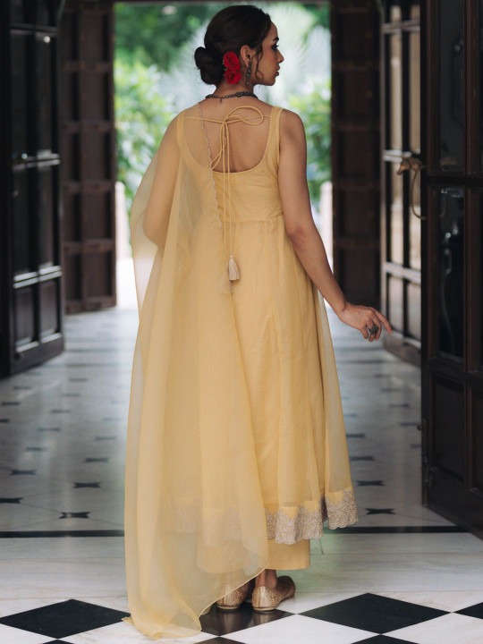 Women Embroidered Panelled Kurta with Trousers & With Dupatta