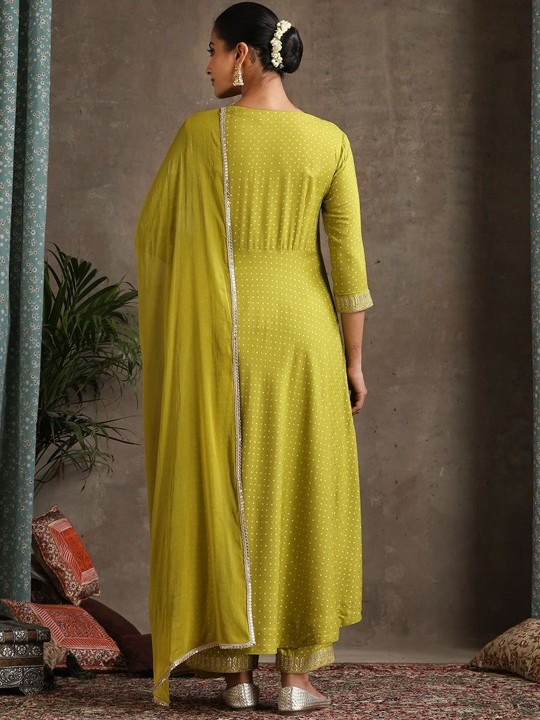 Floral Printed Sweet Heart Neck Anarkali Kurta with Palazzos & With Dupatta