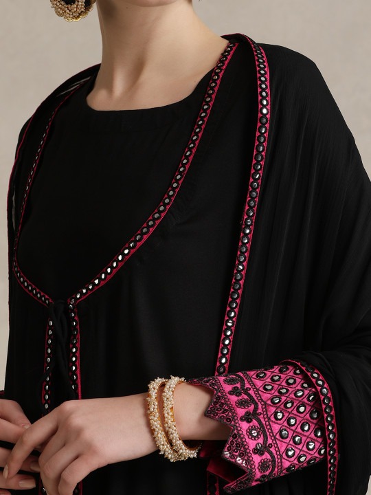 Geometric Embellished Mirror Work A-Line Kurta With Sharara & Dupatta